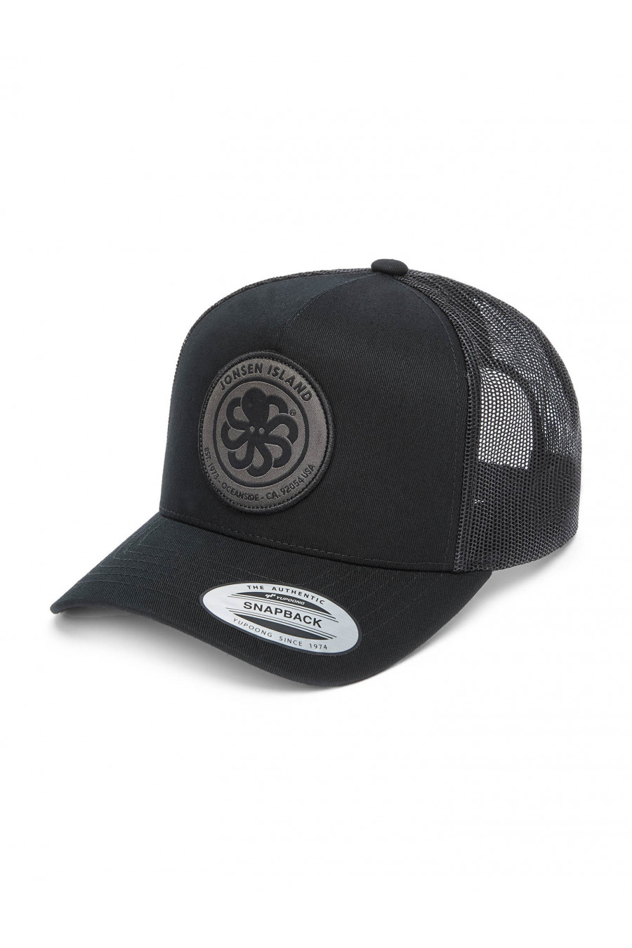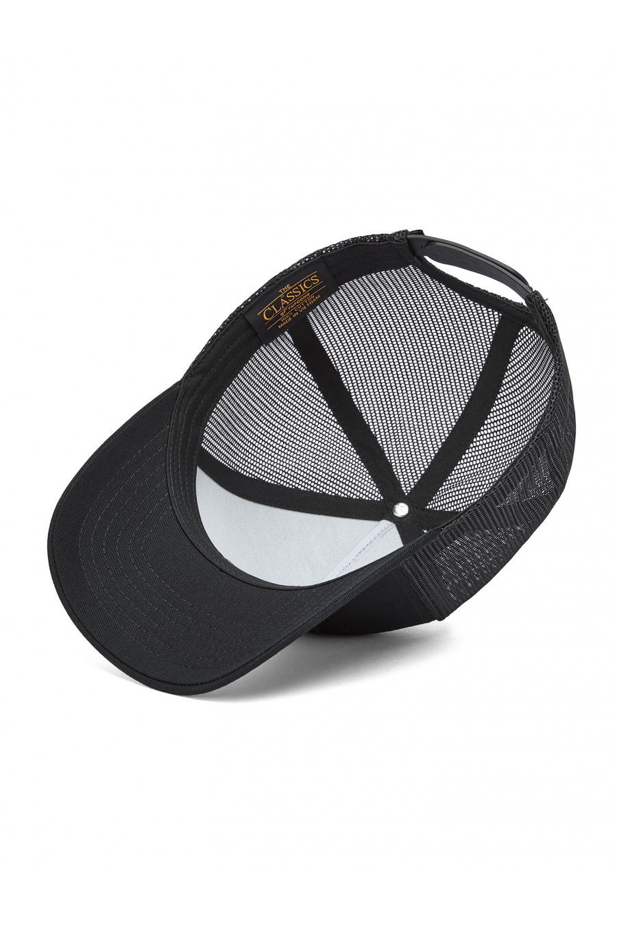 Casquette camionneur avec visière courbée et ajusteur à bouton-pression en plastique.