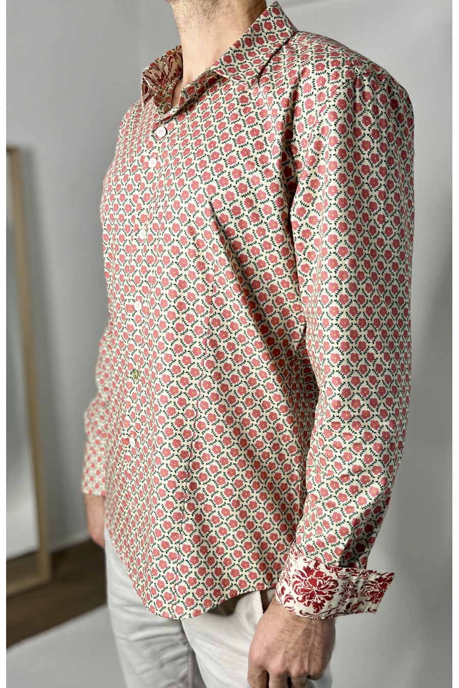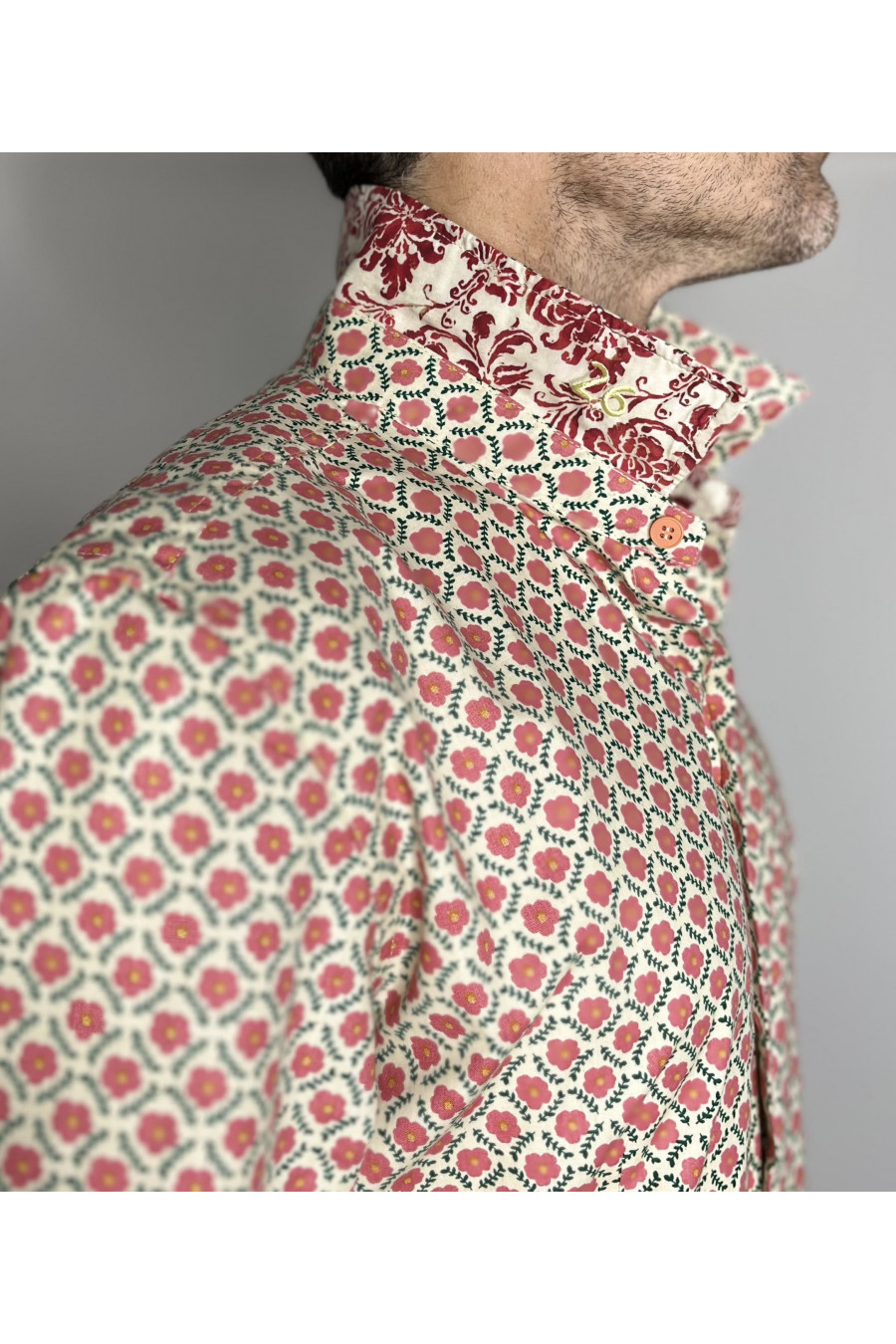 Chemise coupe ajustée, avec tissu contrasté aux poignets et au col, broderie à l'intérieure du col.