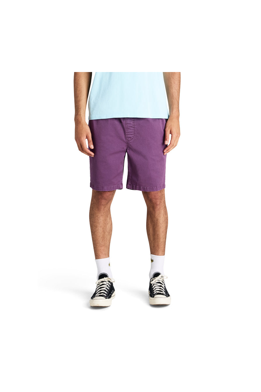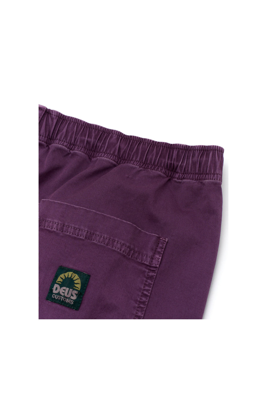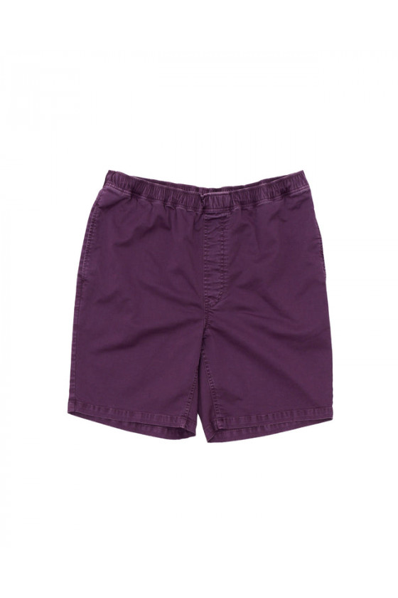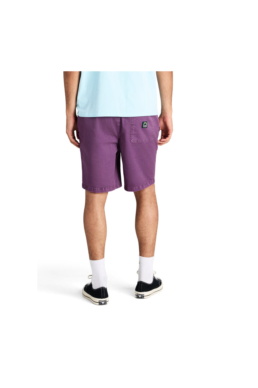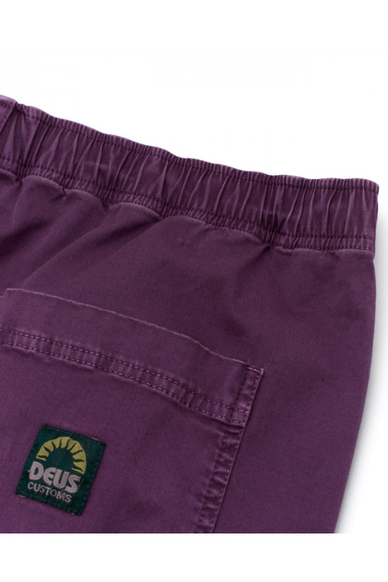 Short coupe relax, ceinture élastiquée avec cordon de serrage, deux grandes poches sur l'avant, une poche plaquée à l'arrière avec l'étiquette Deus Custom.