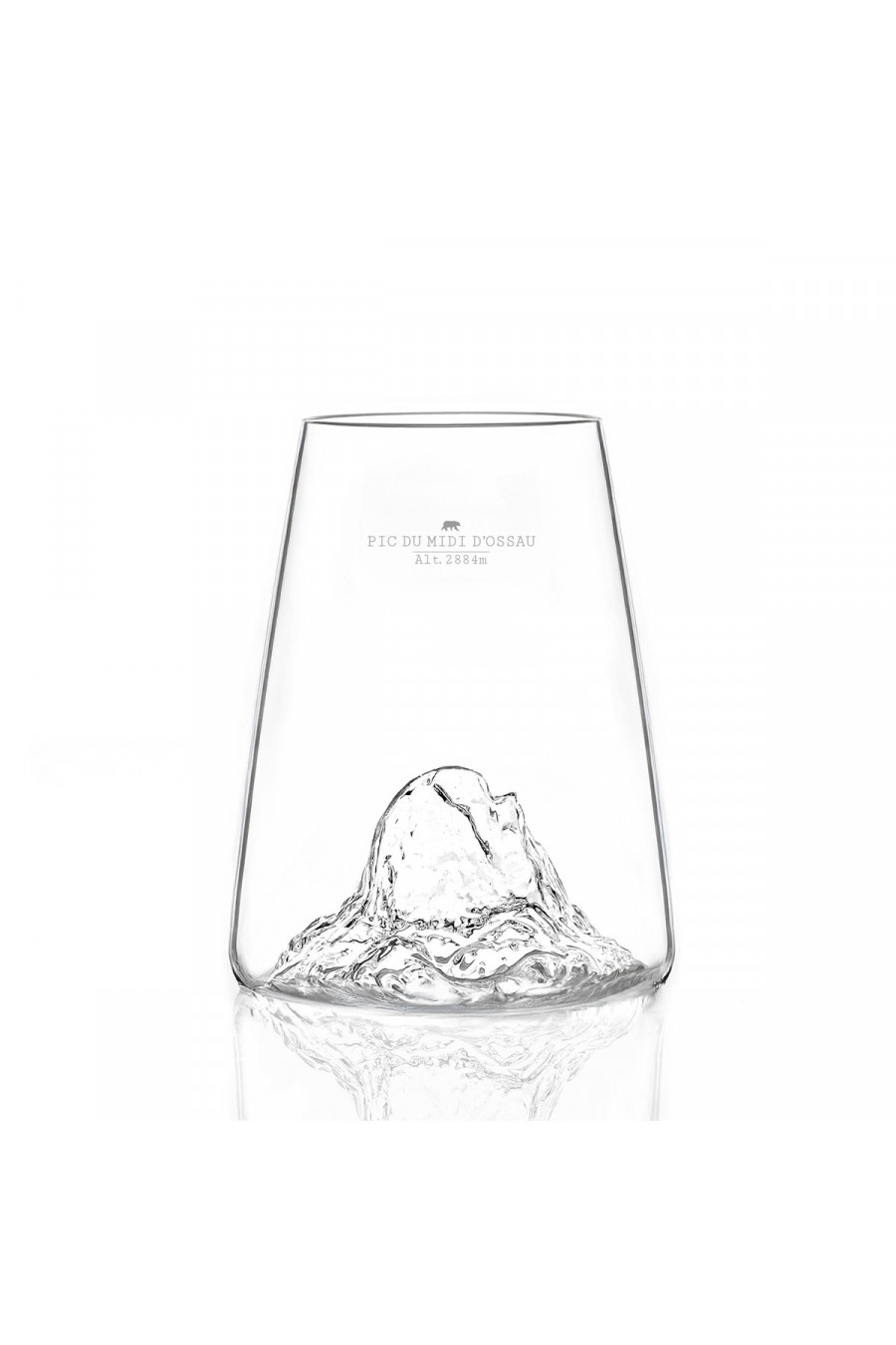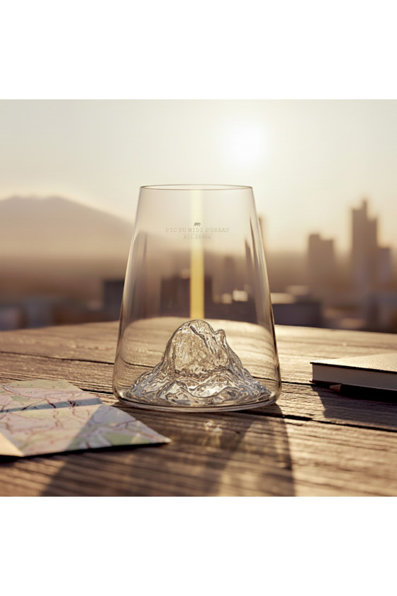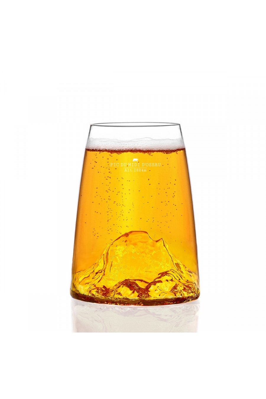 Verre avec fond en relief topographique du Pic du Midi, parfait pour y déguster bières, cocktails, ou sirops avec sa grande contenance.